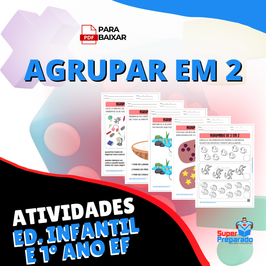 Para facilitar o ensino e a prática de agrupar em 2 unidades, disponibilizamos uma atividade em PDF especialmente desenvolvida para alunos da Educação Infantil. Essa atividade oferece uma abordagem prática e divertida para ajudar as crianças a aprenderem a agrupar objetos em pares.