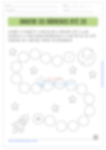 Na quinta e última atividade, nossos alunos deverão ajudar um foguete a decolar até a Lua. Para isso, ele deve escrever a contagem regressiva da decolagem, começando do 20 e terminando no 1. Esta atividade desenvolve a habilidade de contagem regressiva e reforça o entendimento da ordem numérica de forma decrescente.