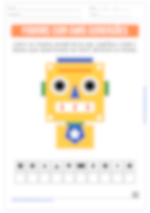Na segunda atividade, os alunos observarão a figura de um robô composto por diferentes formas geométricas. Eles devem contar quantas vezes cada forma aparece no robô e registrar essas quantidades na legenda abaixo da figura. Por exemplo, se o robô possui 1 quadrado e 2 círculos, os alunos devem escrever esses números no local correspondente a essas figuras. Esta atividade desenvolve a habilidade de contar e reforça o reconhecimento das formas geométricas no contexto de uma imagem composta.