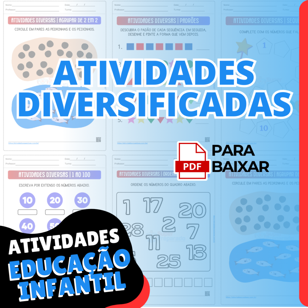 A atividade em PDF para alunos da Educação Infantil sobre Atividades Diversificadas é uma forma divertida de estimular o aprendizado e o desenvolvimento das crianças. Nesse material, os pequenos terão acesso a uma variedade de atividades lúdicas e educativas que abrangem diferentes áreas, como linguagem, coordenação motora e criatividade. Além disso, há um pacote completo de mais de 300 atividades de matemática especialmente elaboradas para a Educação Infantil, proporcionando um aprendizado prático e interativo.