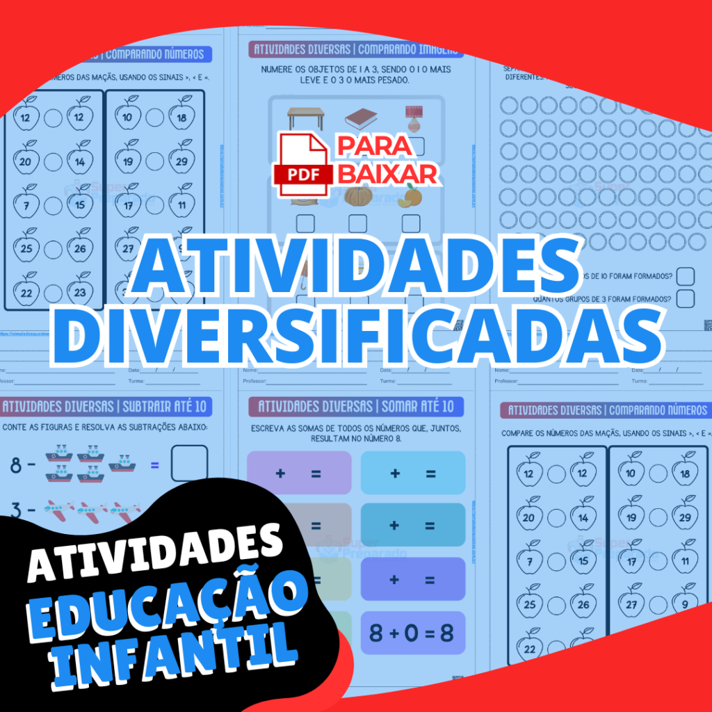 A atividade em PDF para alunos da Educação Infantil sobre Atividades Diversificadas oferece uma variedade de exercícios educativos e divertidos, promovendo o desenvolvimento cognitivo e motor das crianças. Além disso, há também um pacote completo com mais de 300 atividades de matemática especialmente elaboradas para a Educação Infantil, tornando o aprendizado ainda mais dinâmico e eficaz para os pequenos estudantes.