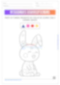 Na segunda atividade, os alunos devem colorir as figuras geométricas no desenho do coelho de acordo com a legenda apresentada. Esta atividade trabalha a associação entre formas geométricas e cores, além de desenvolver a coordenação motora fina ao colorir dentro dos limites das figuras. Incentive os alunos a nomearem as formas enquanto as pintam, para reforçar o reconhecimento visual das formas geométricas. Esta prática promove a habilidade de reconhecimento de cores e formas.