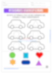 Na quarta atividade, os alunos devem recortar as formas geométricas que estão ao final da página e colá-las nos carros com a forma correspondente. Esta atividade trabalha a habilidade de identificação e classificação das formas geométricas, além de desenvolver a coordenação motora fina ao recortar e colar. Incentive os alunos a descreverem cada forma antes de colá-la, para promover o reconhecimento e a expressão verbal das formas geométricas. Esta prática promove a habilidade de classificação e organização.