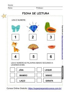 Apostila para baixar com diversas atividades. Além de ler o aluno deve fazer relacionar o número às imagens. Material colorido e em pdf. Aplique com seus alunos. São atividades de acordo com a BNCC. É só baixar e imprimir. O material é colorido e ideal para plano de aulas. Este material poderá ser utilizado durante as aulas ou como atividades de reforço, para casa, etc. Também o professor ou professora pode utilizar para alunos com dificuldades de aprendizagem em turmas de EJA ou séries iniciais do Ensino Fundamental. Para baixar, clique no link abaixo.