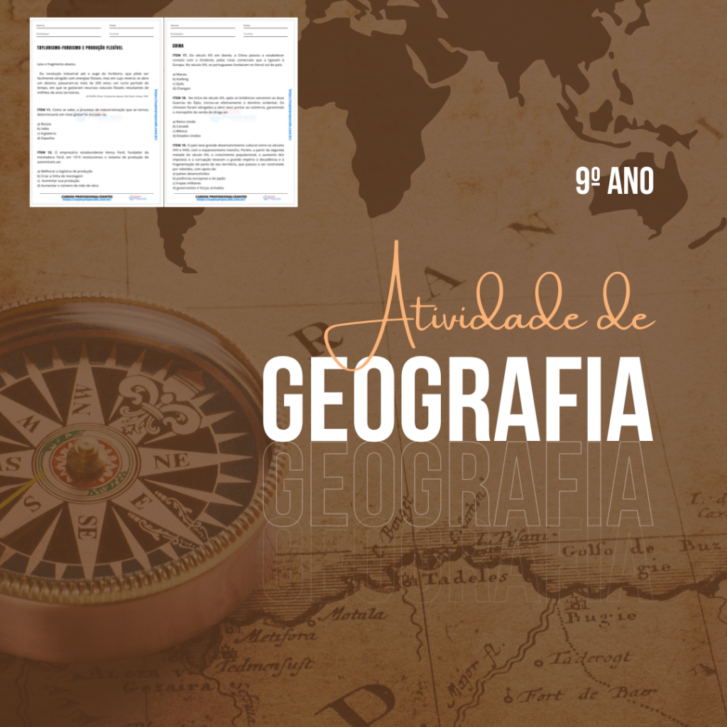 Atividade de Geografia 9º ano. É só baixar e imprimir, o material é ideal para plano de aulas. Este material poderá ser utilizado durante as aulas ou como atividades de reforço, para casa, etc. Além disso, o professor ou professora pode utilizar para alunos com dificuldades de aprendizagem em turmas de EJA ou séries iniciais do Ensino Fundamental. Para baixar, clique no link abaixo.