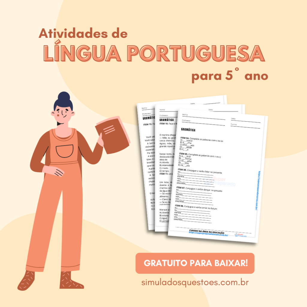 Atividade de Língua Portuguesa 5º ano. É só baixar e imprimir. O material é ideal para plano de aulas. Este material poderá ser utilizado durante as aulas ou como atividades de reforço, para casa, etc. Também o professor ou professora pode utilizar para alunos com dificuldades de aprendizagem em turmas de EJA ou séries iniciais do Ensino Fundamental. Para baixar, clique no link abaixo.