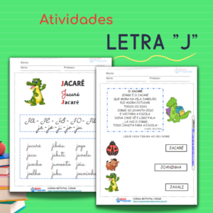 Atividades com a letra “J” para Educação Infantil e Ensino Fundamental. É só baixar e imprimir. O material é colorido e ideal para plano de aulas. Este material poderá ser utilizado durante as aulas ou como atividades de reforço, para casa, etc. Também o professor ou professora pode utilizar para alunos com dificuldades de aprendizagem em turmas de EJA ou séries iniciais do Ensino Fundamental. Para baixar, clique no link abaixo.