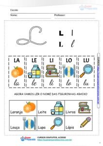 Atividades com a letra “L” para Educação Infantil e Ensino Fundamental. É só baixar e imprimir. O material é colorido e ideal para plano de aulas. Este material poderá ser utilizado durante as aulas ou como atividades de reforço, para casa, etc. Também o professor ou professora pode utilizar para alunos com dificuldades de aprendizagem em turmas de EJA ou séries iniciais do Ensino Fundamental. Para baixar, clique no link abaixo.