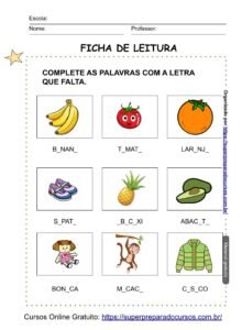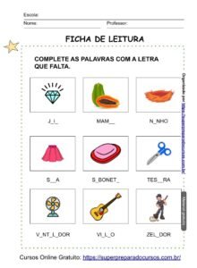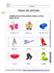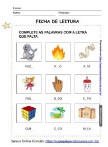 Atividades Letra Faltando para baixar. O aluno deve completar com vogais as palavras de cada atividade. É só baixar e imprimir. O material é colorido e ideal para plano de aulas. Este material poderá ser utilizado durante as aulas ou como atividades de reforço, para casa, etc. Também o professor ou professora pode utilizar para alunos com dificuldades de aprendizagem em turmas de EJA ou séries iniciais do Ensino Fundamental. Para baixar, clique no link abaixo.