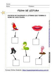 Atividades letra inicial das imagens. O aluno deve escrever a letra inicial de cada figura. É só baixar e imprimir. O material é colorido e ideal para plano de aulas. Este material poderá ser utilizado durante as aulas ou como atividades de reforço, para casa, etc. Também o professor ou professora pode utilizar para alunos com dificuldades de aprendizagem em turmas de EJA ou séries iniciais do Ensino Fundamental. Para baixar, clique no link abaixo.