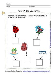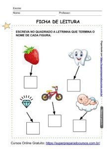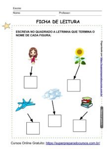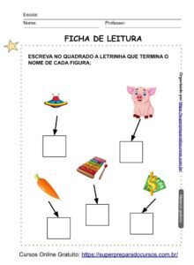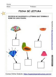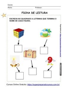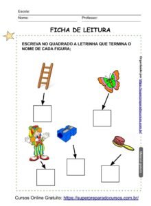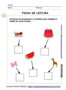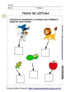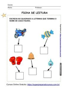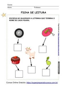 Atividades letra inicial das imagens. O aluno deve escrever a letra inicial de cada figura. É só baixar e imprimir. O material é colorido e ideal para plano de aulas. Este material poderá ser utilizado durante as aulas ou como atividades de reforço, para casa, etc. Também o professor ou professora pode utilizar para alunos com dificuldades de aprendizagem em turmas de EJA ou séries iniciais do Ensino Fundamental. Para baixar, clique no link abaixo.