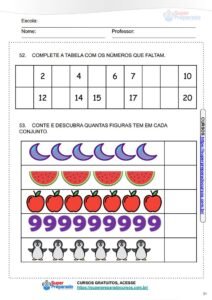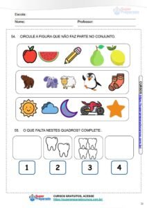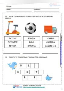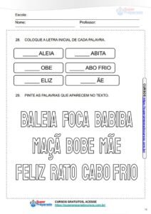 Atividades para imprimir. São diversas atividades em PDF para baixar. Podem ser utilizadas em sala de aula por professores e também pelos pais de alunos em casa. As atividades podem servir como complemento de reforço escolar ou utilizadas no plano de aula. Ótimas atividades que estão de acordo com as habilidades e competências da BNCC. O material consiste em uma apostila de atividades para o 1° ano do Ensino Fundamental. Baixe o material e bons estudos!