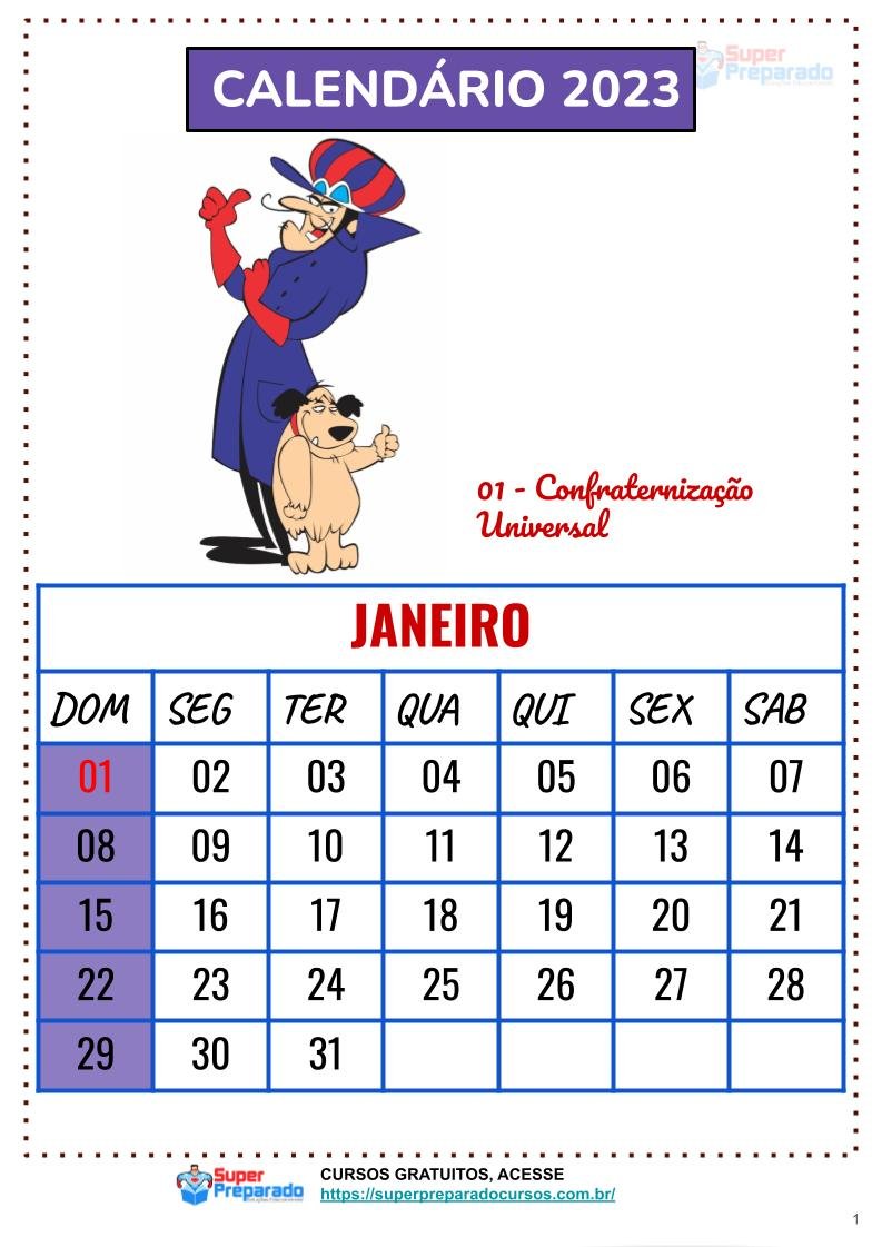 Calendário 2023 – Os incríveis. Para baixar, clique no link abaixo. BAIXAR – Calendário