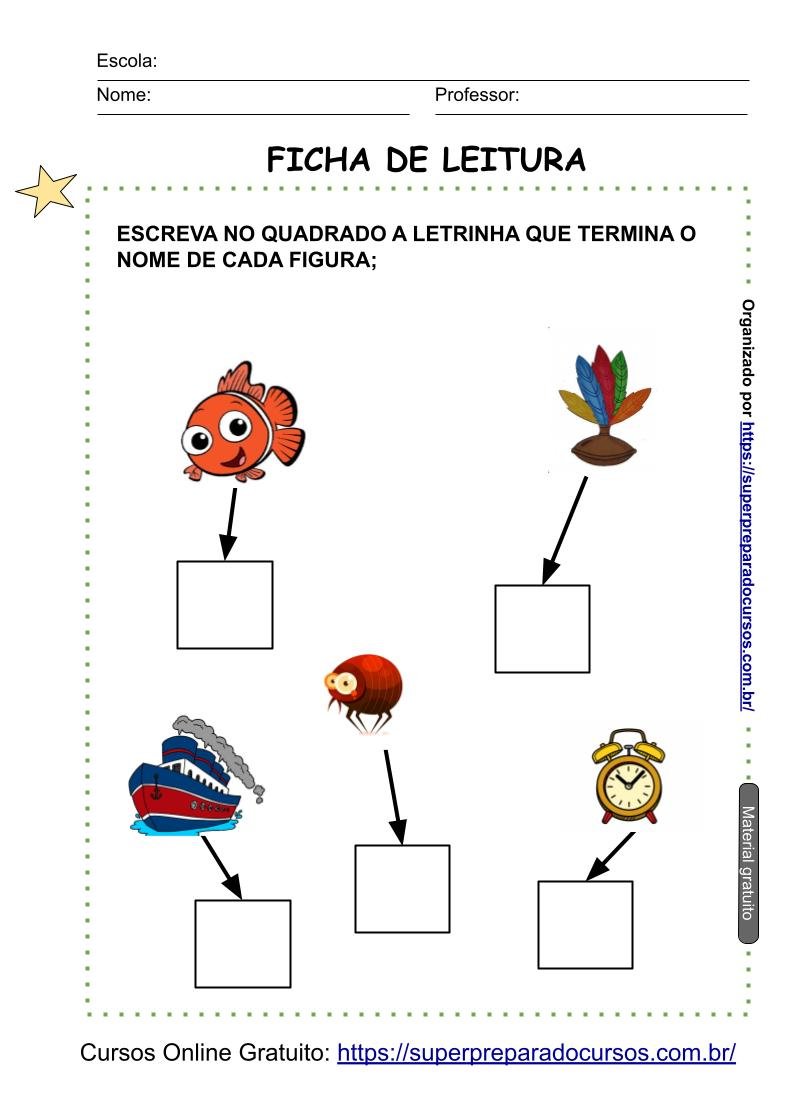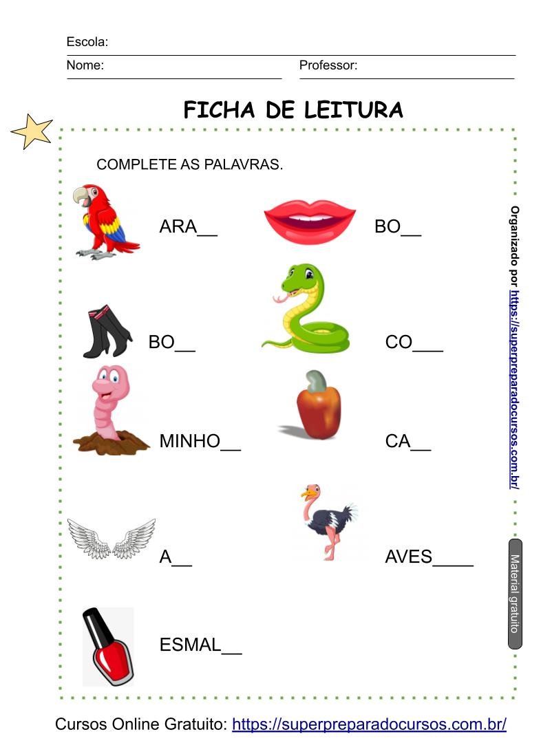 Atividades diversas de leitura e escrita. São atividades de acordo com a BNCC. É só baixar e imprimir. O material é colorido e ideal para plano de aulas. Este material poderá ser utilizado durante as aulas ou como atividades de reforço, para casa, etc. Também o professor ou professora pode utilizar para alunos com dificuldades … Ler mais