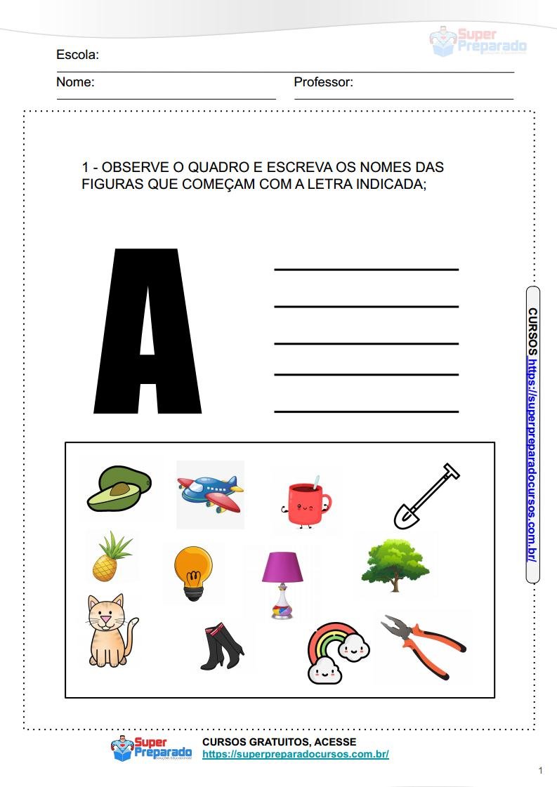 Atividades letra inicial das imagens. O aluno deve escrever a letra inicial de cada palavra conforme a imagem aprensentada. É só baixar e imprimir. O material é colorido e ideal para plano de aulas. Este material poderá ser utilizado durante as aulas ou como atividades de reforço, para casa, etc. Também o professor ou professora … Ler mais