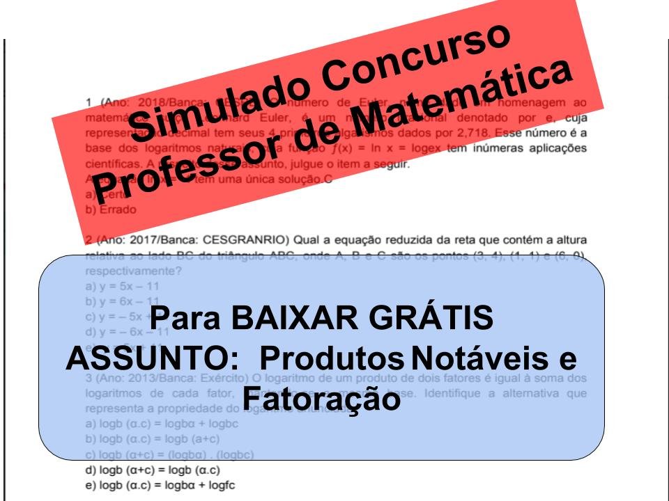 Olá! Tudo Bem? Professor, professora, gestores e demais colegas de profissão, este blog é destinado a materiais de concursos, diariamente aqui você encontrará simulados, resumos, questões e muito mais para seu concurso. Tudo para baixar. A SEGUIR TEM MAIS UM MATERIAL QUE VOCÊ PODERÁ BAIXAR. BONS ESTUDOS! As questões são para concurso de professor de … Ler mais