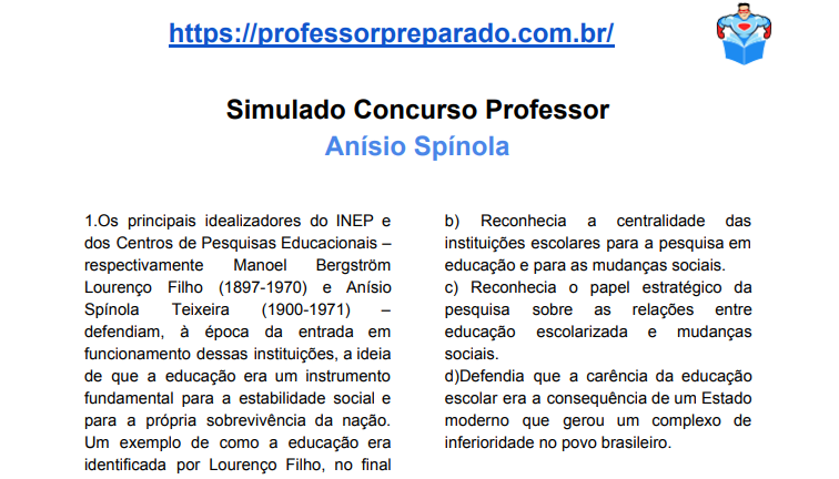 Oi, como está?! Esse post traz para você concurseiro(a) de plantão um material de estudo imperdível para o concurso de professor, gestores, pedagogos e todos os cargos na área da educação. O simulado é sobre Pierre Lévy, assunto muito recorrente em provas de concurso. Baixe o simulado e bons estudos! Simulado Pierre Lévy-BAIXAR!