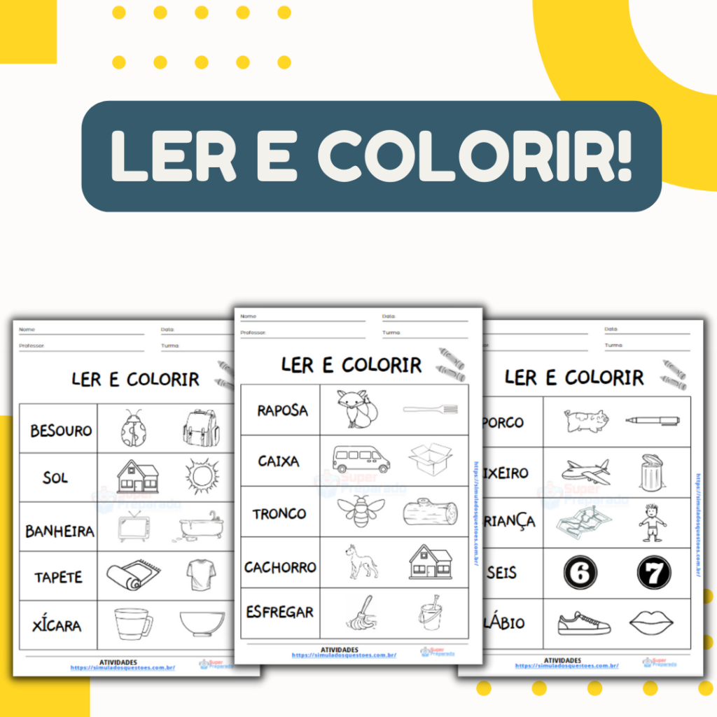 Ler e colorir. É só baixar e imprimir. O material é ideal para plano de aulas. Este material poderá ser utilizado durante as aulas ou como atividades de reforço, para casa, etc. Também o professor ou professora pode utilizar para alunos com dificuldades de aprendizagem em turmas de EJA ou séries iniciais do Ensino Fundamental. Para baixar, clique no link abaixo.