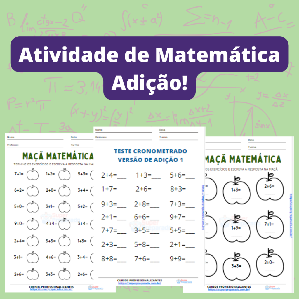 Matemática – Adição 01. O material é ideal para plano de aulas. Este material poderá ser utilizado durante as aulas ou como atividades de reforço, para casa, etc. Também o professor ou professora pode utilizar para alunos com dificuldades de aprendizagem em turmas de EJA ou séries iniciais do Ensino Fundamental. Para baixar, clique no link abaixo.