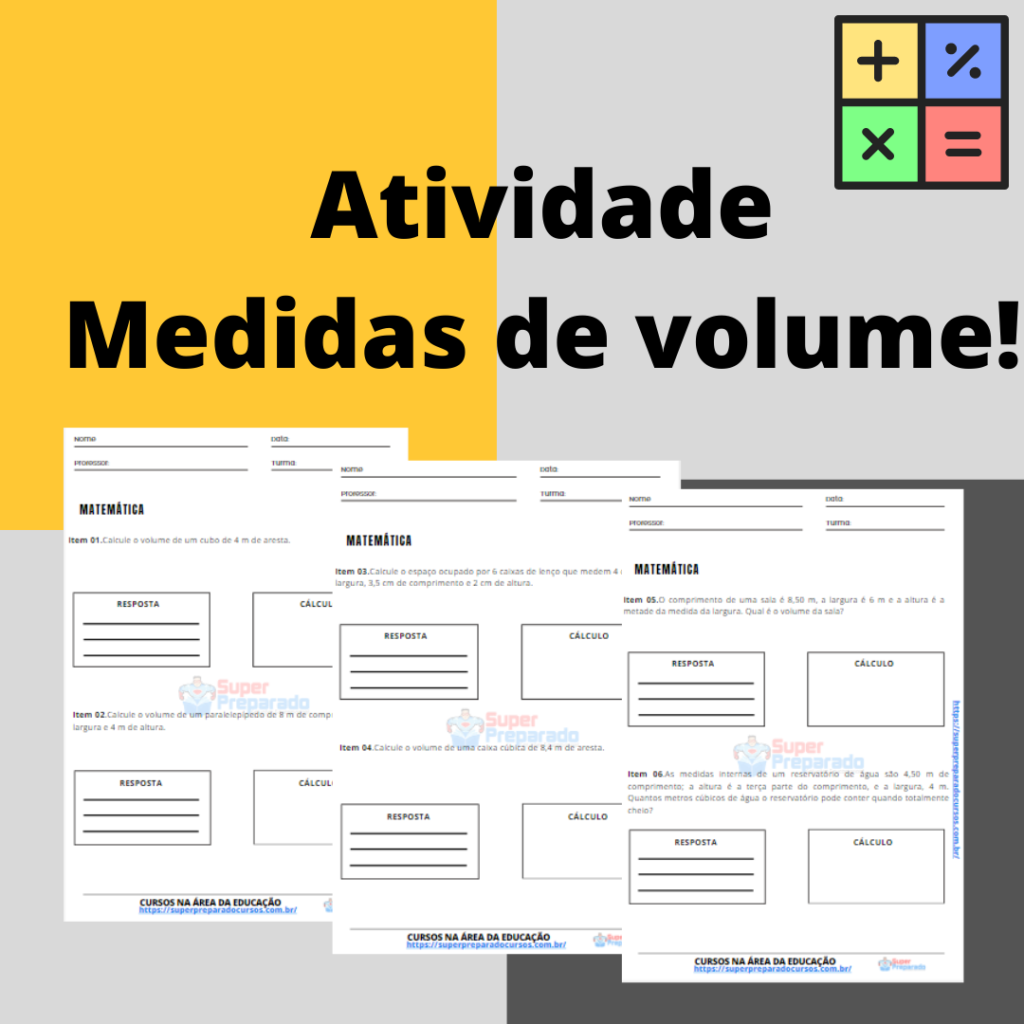 Medidas de volume. É só baixar e imprimir. O material é ideal para plano de aulas. Este material poderá ser utilizado durante as aulas ou como atividades de reforço, para casa, etc. Também o professor ou professora pode utilizar para alunos com dificuldades de aprendizagem em turmas de EJA ou séries iniciais do Ensino Fundamental. Para baixar, clique no link abaixo.