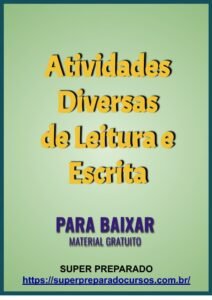 APOSTILA DE 50 ATIVIDADES DE MATEMÁTICA – Educação Infantil https://drive.google.com/file/d/13luEmo6fT7ceNnljhDuowxiF8oMtgke1/view?usp=sharing 50 TEXTOS PARA ALFABETIZAR – LEITURA https://drive.google.com/file/d/1C8zj4R5SkB7c3p6s8RfJVGOexjUQWhCS/view?usp=sharing Atividades de Ordem Alfabética https://drive.google.com/file/d/1aiMr1HpW9bf53L3ifHAV5URwcFQshKwM/view?usp=sharing Letra inicial https://drive.google.com/file/d/1EaHAPtVPGzqgZRNbjvWhS2FsZjZHPr0m/view?usp=sharing