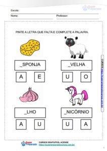 Atividades com vogais. É só baixar e imprimir. O material é colorido e ideal para plano de aulas. Este material poderá ser utilizado durante as