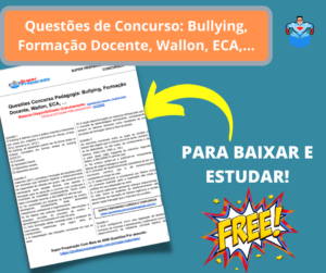Questões de conhecimentos pedagógicos em pdf para baixar. São questões de concursos na área de educação com os temas Bullying, Formação Docente, Wallon, ECA,… Todas as